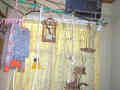 いつも、カーテンレールをマーキングで汚すので、爪砥ぎの効果も期待して(効果あまり無し)2本のレールの間にはめ込んでいます。