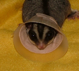 Gizmo wearing an E-Collar after being