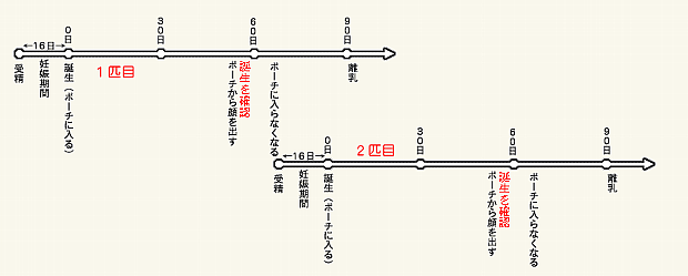 翌々月の月終わりに2匹目が生まれたようです。間隔80日にしても。