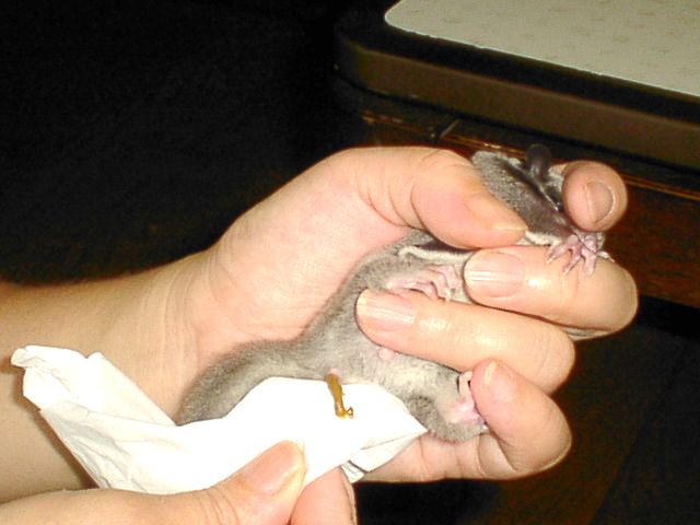 指をカミカミして掌の中にもぐり込んできた。ケージから出して授乳する。