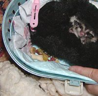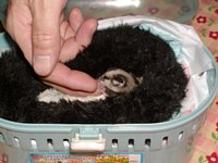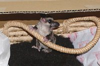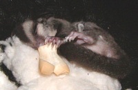 11日 パパ&ままお休み オシッコ:ウンチ ミルク:おちょこ ままの手をしきりにカミカミすろので 焼き芋を4秒チン!して与える。 10:00 オシッコ:ウンチ 12:00 ミルク:おちょこ 焼き芋 14:00 オシッコ:ウンチ 18:00 オシッコ:ウンチ ミルク:おちょこ かじりま専科・焼き芋・リスハムの主食・ リスのまんまなどをケージに入れて置く事に。 12:00 オシッコ: ミルク:おちょこ ここ何日か、オシッコやミルクの後に良く遊んでやっている 布団の上やままの肩や膝などちょろちょろ動きたがる。 日に日に大きくなっていくのが良くわかる。 |