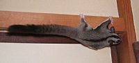 水が飲めるようになった時:7月20日 給水器を指でカチャカチャしてお水を出すと興味を示して指についたお水をペロペロ舐めた。 23日 「ケージからカチャ…カチャ…とぎこちない音がするので音の出所を探すと茶太郎が給水器にチャレンジしていた。 水飲みというより、まだ遊んでる感じ。 8月初めには一人で上手にお水を飲めるようになった。 一人で遊べるようになった時:8月6日 日課のようになった茶太郎お遊びたいむぅ〜。 ままがキャンプから帰ってきたらケージから出せ出せコール! ポッコリランドでしばらく遊んでいたら、ままが疲れて寝ちゃったのねん。 気がついたら茶太郎が一人でエアコンカバーまで登って遊んでいたずら。 「チャ太」って呼んだらカーテンレールの上の白樺に飛び移ってこっちを見て、エアコンカバーの方がまだままに近いと思ったのか、 また飛び移って四苦八苦していたので、見かねて助け舟ならぬ、お助けママの手を差し出したら転がるようにしがみついてきたずら。 8月20日ポッコリランドでしばらく遊んで、ままが食事の支度をするのでしばらく一人遊びをさせておいた。 様子を見にポッコリランドに入るとすぐにままの所にテケテケ走ってくる。 一度、手にしがみ付くと手から離れない、いつもケージに戻すのに一苦労。 ひっつき虫みたいに外そうとしてもしがみ付いて離れないからね。 餌の種類の変遷: なんでも良く食べる。8月初めの頃はカマボコがお気に入り。 最近の8月下旬はトウモロコシ。お腹に抱え込んで食べるからね。 ミルクをあまり飲まなくなった時:7月下旬 その頃からミルクを入れても残すようになった。 8月にはいると入れても匂いをかいでちょっとだけ舐めておしまい。「別のモノないの?」ってな目でこっちを見る。 パパとままを呼ぶ。 7月の終わりには鳴いて呼ぶようになった。 ままがキッチンでお餌の準備をしていると鳴いて呼ぶ。しかたがないのでつまみ食いお餌をやってごまかす。 最近では一人遊びさせると時々ままを呼ぶ。 捕まったら最期!パパいわく「リーサルウエポン(最終兵器)」ポーチに無理やり入れてケージに戻すまで ず〜〜とひっつき虫状態。オヨヨ… ケージから出すと今だ、ウンチとオシッコをままにやってもらっているシモダメ茶太郎ずら。 |