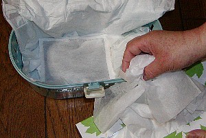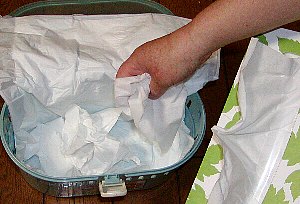 − 手順 3 −上からティッシュペーパーを丸めて敷き、 空気の層を作る。 |