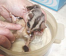 タッパーにお湯を用意していつもの様にシッポからゆっくりと入浴させお尻を浸けて肛門の周りをゆっくりと