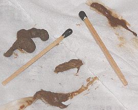 左右・上下を肛門に向ってマッサージしてあげると出てきましたぁ〜〜〜。待望の柔らかウンチ君が。